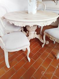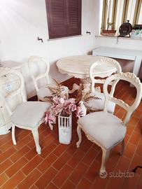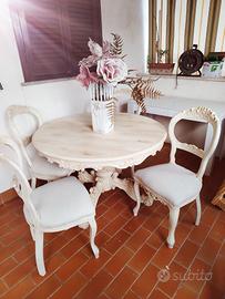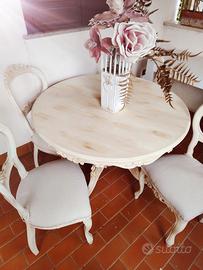 TAVOLO TONDO SHABBY ANTICATO 120 CHIUSO 160 APERTO ALLUNGABILE 250 EURO SEDIE A PARTE 60 EURO L UNA PREZZO TOTALE 490 EURO