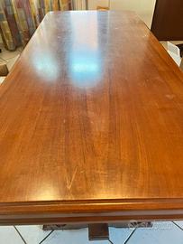 Vendiamo un tavolo per 6-8 persone, allungabile, in stile barocco piemontese per un salotto elegante e classico o per una rivisitazione moderna, di legno massiccio colore noce, di produzione locale di fine secolo novecento a 350 €.