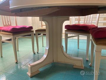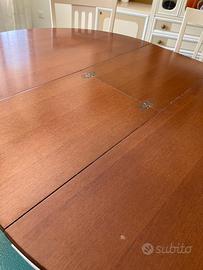 tavolo rotondo in legno in ottime condizioni estendibile Diametro: 120cm + 40cm estensione 6 sedie in legno imbottite, condizioni ottime