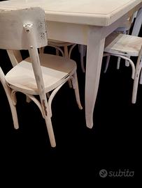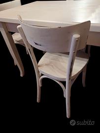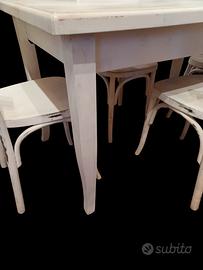Tavolo e sedie stile shabby, tavolo con 4 sedie, dimensioni tavolo altezza: 79 centimetri, larghezza 129 centimetri, profondità 79 centimetri.