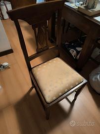 Tavolo fatto a mano dimensioni 104x114(allungabile di 100)H80+ 4 sedie di cui una da riparare (vedi foto).