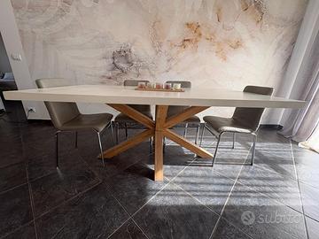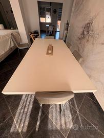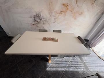 Tavolo lunghezza 200mt ,larghezza 1 mt con sei sedie ecopelle color tortora