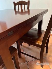 Vendo tavolo in arte povera(gia' smontato per facilita' di trasporto) misura 1 metro x 1 metro estendibile a 2 metri di lunghezza, altezza 80 cm + 4 sedie il tutto in ottime condizioni. Solo ritiro no spedizione.