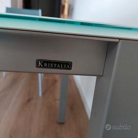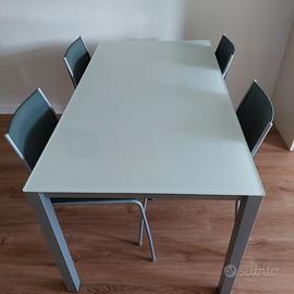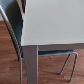 Tavolo cucina 150x80 co piano in vetro corredato di 6 sedie