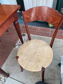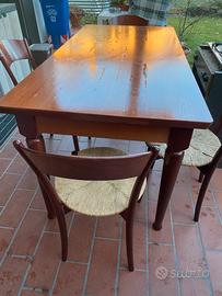 Tavolo in rovere impiallacciato con 4 sedie impagliate. Il tavolo misura cm 80x160 ed allungato diventa cm 80x200