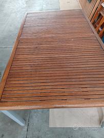 Tavolo e nr 4 sedie come da foto; ideale per taverna/porticato/esterno Il tavolo è allungabile di ulteriori 20cm Recentemente trattato con impregnante Vendita solo in blocco tavolo + sedie Solo messaggi WAPP