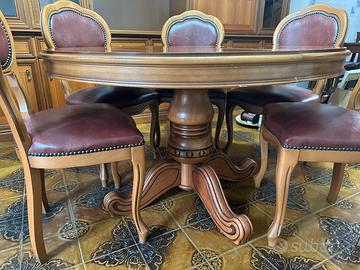 Vendo tavolo rotondo allungabile con 6 sedie legno massello imbottite