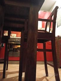 Vendesi per trasferimento in altra città splendido tavolo da cucina in legno massiccio 100x100 h 100 cm con 4 seggiole sgabello. Mobile di alta fattura tenuto davvero bene . Si sposa con tanti tipi di arredamento.