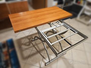 tavolo rettangolare apribile a libro. da tavolino a tavolo in un secondo, comodissimo. legno e acciaio.