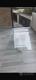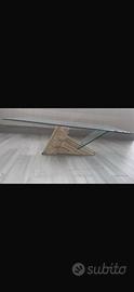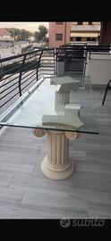 Vendesi Tavolo e Tavolino, in vetro con colonne in pietra. Di ottima qualità, presenta alcuni difetti estetici piccoli.