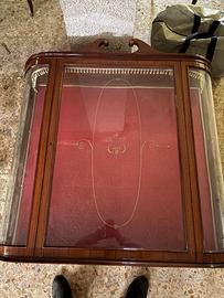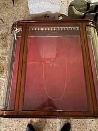 Inclusa anche vetrina espositiva coordinata, con vetri curvi laterali, interno rivestito in velluto rosso e decori dorati, ideale per esporre porcellane, oggetti di valore o collezioni.