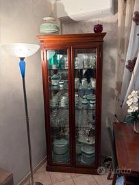Vetrina in stile classico con ripiani in vetro e tavolo abbinato in legno con sedie. Tavolo allungabile fino 2mt.