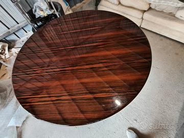 Stupendo tavolo ebano artigianale, molto pesante, lucido con basamento lavorato a cerchio in ebano lucido.