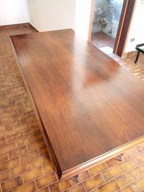 Tavolo in buono stato in legno tamburato con gambe e stile rustico