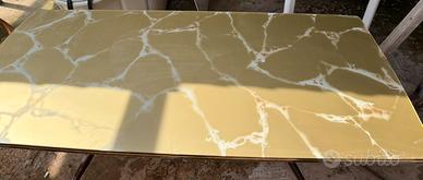 Tavolo effetto marmo , con vetro color oro con venature bianche Vendita per trasloco .