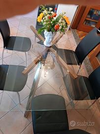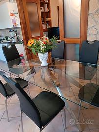 Tavolo con piano in vetro temperato: rispetto ai tavoli da pranzo in legno, il piano di questo tavolo realizzato in vetro temperato di qualità è ecologico, non si deforma facilmente a causa dell'umidità, e il tavolo può essere combinato meglio con altri mobili per formare un effetto visivo trasparente.