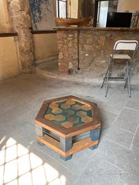 Tavolo esagonale in resina e legno