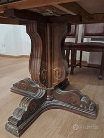 tavolo espandibile in legno in arte povera a supporto centrale anni 60.