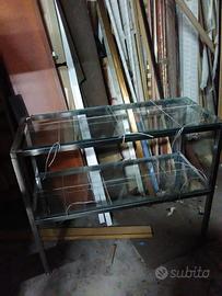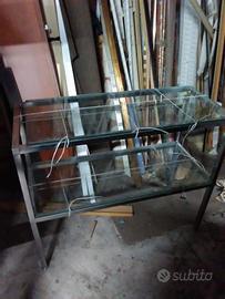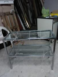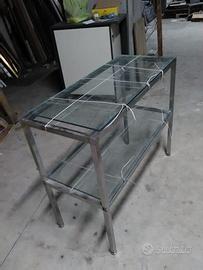 Tavolo espositore due ripiani,in acciaio e vetro. Misure circa 1x0,40. Seminuovo