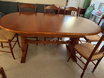 Vendo tavolo da pranzo estendibile con 8 sedie. Il tavolo è in legno di rovere, sono visibili le finiture del legno ed è tenuto in ottime condizioni. Le sedie sono dello stesso legno con la seduta in paglia. Perfetto per riunioni di famiglia o cene con gli amici. - Adatto a qualsiasi stile di arredamento - Finiture naturali del legno - Superficie estendibile (180/360x95) - Estensioni: 4 tavole da 45cm - Struttura robusta e in ottime condizioni - Le 8 sedie in paglia e legno sono comprese Altre info su richiesta Solo ritiro di persona