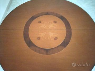 Bellissimo tavolo da pranzo in legno massello con intarsio in noce, dal design elegante e raffinato. Ideale per cene con amici e famiglia.