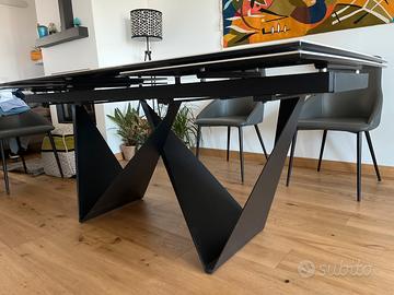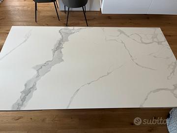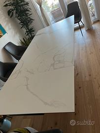 TAVOLO EXRO ALBATROS STRUTURA NERA PIANO EFFETTO MARMO BIANCO