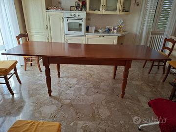 Tavolo in legno colore marrone scuro, dimensioni base 150x90cm, allungabile 50cm per lato (dimensione max 250x90cm). Praticamente come nuovo, nessun graffio sul piano (sempre al riparo e ricoperto). Vendo per inutilizzo. Trasposto ed imballo a carico dell'acquirente.