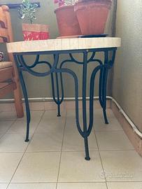 Vendo tavolo basso, struttura in ferro battuto piano in terracotta, effetto moasaico.