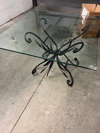Bellissimo tavolo base ferro battuto e piano in cristallo Presenta delle imperfezioni sul vetro.