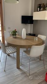 Vendo tavolo Calligaris Atelier CS/398 RD rotondo in legno diametro 130 cm e allungabile a 186 cm e 4 sedie Arper in pelle colore crema.