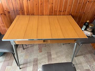 tavolo in formica marrone Tenuto molto bene, qualche segno sulle cromature