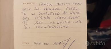 Tavolo Francese, allungabile,munito di certificato di garanzia. Prezzo leggermente trattabile,che non significa metà del prezzo. Astenersi perditempo e affaristi.