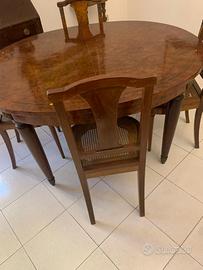 Tavolo francese 2^ metà 800 in radica noce ad occhiello con inserti in bronzo ed avorio apribile;