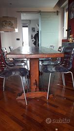 Tavolo fratina per 8 persone cm 70 x 210 in legno antico restaurato in buone condizioni. Si forniscono, comprese nel prezzo, anche prolunghe in legno in larghezza e sottotovaglia a mollettone per arrivare a 12 posti. Larghezza del tavolo con prolunghe circa cm 115 (lunghezza invariata). Disponibilità a collaborare per organizzare il trasporto.