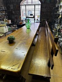 In aggiunta al tavolino vendiamo anche le panche sempre in legno noce la prima (più grande) lunga sempre 4 metri, la seconda ( più piccola) lunga 2 metri.