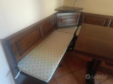 Vendo causa trasloco tavolo 180x85 cm allungabile fino a 350 cm + cassapanche con contenitore in legno. Ottimo stato. Ritiro e trasporto a cura dell’acquirente.