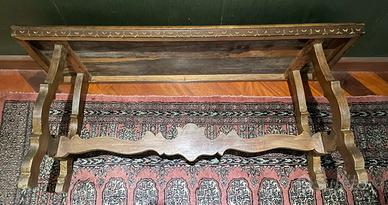 Questo stile di tavolo nasce nei monasteri medievali, caratterizzato da una forma allungata e rinforzi inferiori.