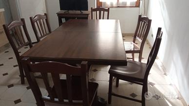 Vendo bellissimo tavolo allungabile in legno massello scuro +6 sedie. Perfetto per ospitare molte persone, ideale per famiglie numerose. Incluso nel prezzo 6 sedie abbinate, solide e resistenti. Ritiro in loco.
