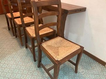 Tavolo Fratino artigianale in noce pieghevole con apertura a libro. Dimensioni 120cm x 80cm aperto (chiuso 40cm) e 4 sedie noce. Ritiro a Lido di Savio