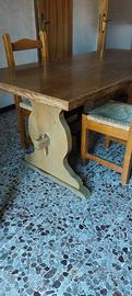 Tavolo tipo fratino in legno massello completo di quattro sedie.