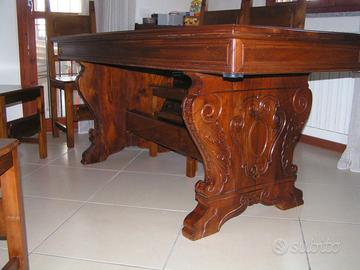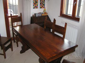 Riproduzione fatta a mano anni 70 di un tavolo fratino. In legno di noce nazionale di 200 anni. 180 x 80, compreso di 6 sedie.