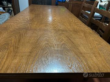 Tavolo tipo "fratino" misure 200x80 in legno rovere massello recentemente lucidato + 8 sedie. Ideale per cucina, soggiorno rustico o taverna.
