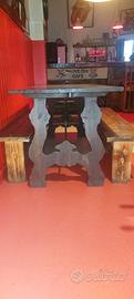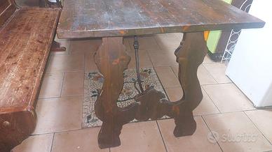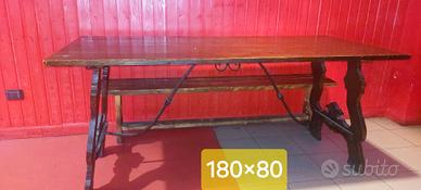 Di epoca XIX Secolo, realizzato in legno massello di noce. Il piano, ampio e robusto, è formato da tavole uniche di grande spessore, che ne testimoniano l’antica manifattura artigianale. Le gambe, sagomate con eleganti intagli, sono unite da una traversa in ferro pieno a volute che conferisce solidità e carattere all’insieme. Un pezzo di grande fascino e presenza scenica, ideale sia per ambienti classici che per spazi dallo stile rustico o eclettico. Misure:80 × 180 × 73 cm 500 non trattabile.