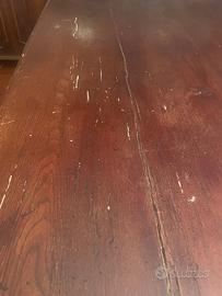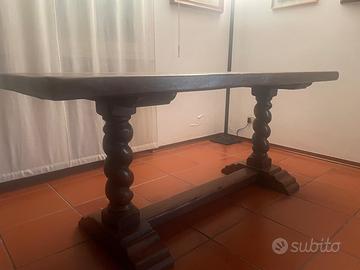 Tavolo fratino antico con piano in noce massello e zampe a torcigliorne. Presenta alcuna rigature sul piano di scarsissima entita’. Misure Altezza 85 lunghezza 200 profondita’ 72.
