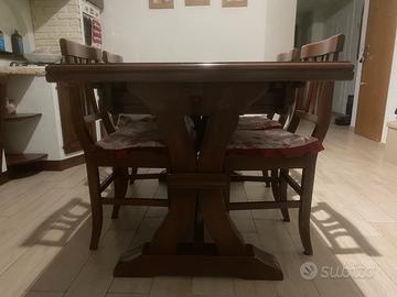 Vendo tavolo fratino in legno massello 180x85 allungabile con tre prolunghe sempre in legno massello fino e tre metri con le due quattro sedie in legno massello, tutto ben conservato