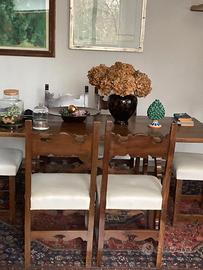 Tavolo frattino 1800 con 6 sedie. Copia di tavolo frattino realizzato nel 1800 con 6 sedie in stile. Dimensioni: 177 x 82 x h 78.