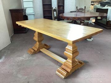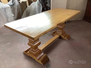 Tavolo frattino tutto in legno massiccio,piano con borsi diritti spessore 5 cm,dimensioni cm 180 x 80,altezza 80 cm gamboni centrali anch’essi in legno.