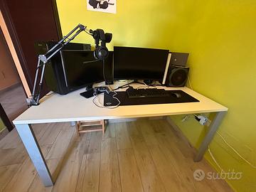 Vendo scrivania da ufficio ideale anche per gaming, struttura in ferro molto resistente , spessore superfice 2,5cm. Vendo per prenderne uno più piccolo 160x 80x74