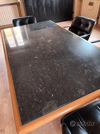 Tavolo della gavina knoll con piano in marmo nero, dettagli in legno e gambe in acciaio.