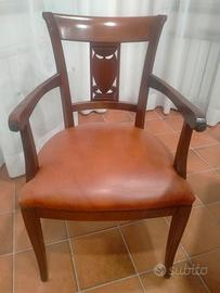 2 sedie capotavola in ciliegio con seduta in pelle rosso bulgaro